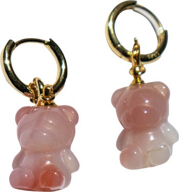 Cute bear shaped agate charm earrings that add playful personality to your jewelry stack. Polished stone detail for fun, casual outfits and gifting.