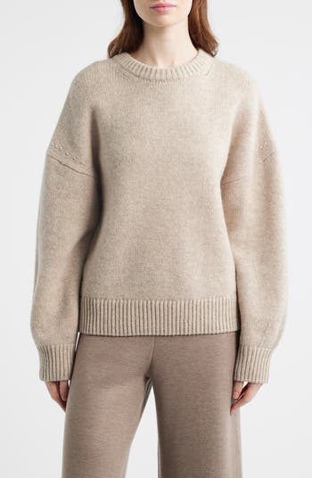 This chunky wool sweater is knit with deeply dropped shoulders and blouson cuffs for a cozy piece you'll reach for on chilly days.