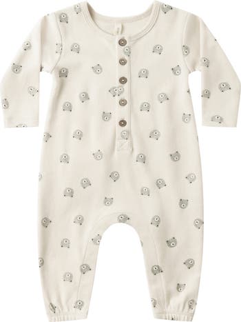 Keep your little cub cozy and comfy in this organic-cotton romper made from velvety-soft brushed jersey patterned with a charming bear print.