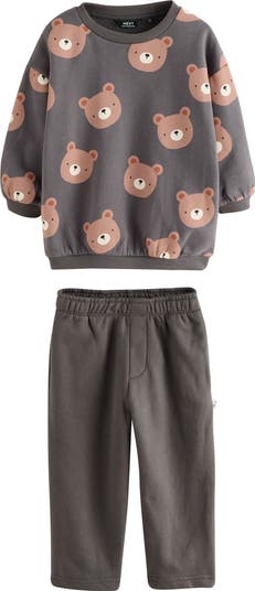 Sweet bears pattern a cozy crewneck sweatshirt paired with coordinating cotton-blend joggers.