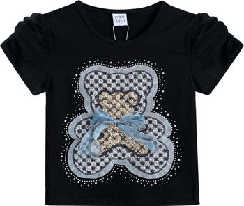 The Bear Applique T-Shirt is a delightful addition to everyone's wardrobe. Crafted in a soft cotton material, this t-shirt features an adorable bear applique that adds a touch of playful charm. The round neck ensures a comfortable and classic fit, while the short puff shoulders provide a charming and girly touch. The straight hem offers a neat and simple finish, making this t-shirt versatile and easy to pair with various outfits.