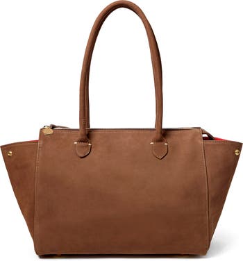 Rich Italian leather flaunts a velvety finish on a spacious tote suspended from rolled shoulder straps and featuring adjustable side gussets to expand the capacity for added storage.