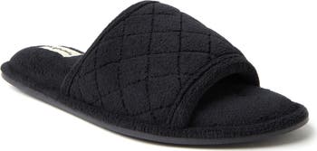 It's time to treat your feet! Plush footbeds and super soft lining combine with cushioned memory foam insoles for unbeatable comfort. Best of all, a pair of proven indoor/outdoor outsoles let you relax on the go! ABSORBENT MATERIAL: Made from an absorbent terry material, our slide slippers are great for use after a shower or at the gym. CLOUD-LIKE CUSHIONING: Dearfoams slippers are designed with a multi-density cushioned insole with memory foam, bringing you instant comfort and relaxation. INDOOR/OUTDOOR OUTSOLE: Made with a rubber sole our slide slippers can be worn indoors while lounging around the house or outdoors to grab the mail or walk the dog. MACHINE WASHABLE: Up-keep is a breeze with these trendy slippers - toss in the washing machine to keep your new favorite slippers fresh and clean!