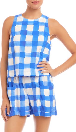 Vivid checks brighten this crisp cotton-kissed top that's begging to shine on a sunny day.