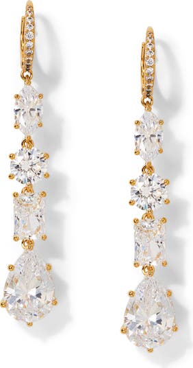 Cubic zirconia catch the light on elegant drop earrings plated in high-shine 18-karat gold.