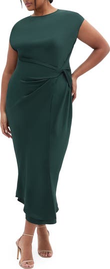 Cut from glossy skin-skimming satin, this maxi is made with abbreviated sleeves and accented with a waistline twist to shape the silhouette.