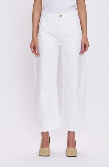 High-rise jeans cut from lightweight, nonstretch cotton denim are cut for a relaxed fit in an ankle-skimming silhouette that flares slightly below the knee.