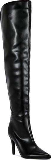 A pointy toe and stiletto heel heighten the everyday drama of this sleek over-the-knee boot.