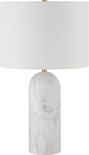 With its lustrous marble finish and off-white linen shade, this timeless table lamp exudes elegance and sophistication.