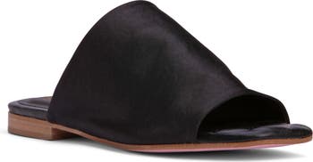 Delicate ruching adds textural intrigue to the upper of a versatile slide sandal grounded by a cushioned footbed for comfortable wear.