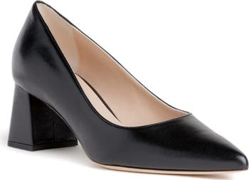 A flared block heel adds stylish height and contemporary intrigue to a pointy-toe pump furnished with a well-cushioned footbed for lasting comfort.