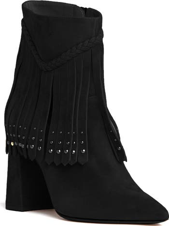 A fringe of suede detailed in shiny grommets veils this head-turning Italian bootie that's made even more covetable with memory foam cushioning.