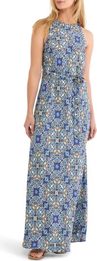 An intricate tile pattern elevates the look of a sleeveless column dress that's destined to stand out from the crowd.