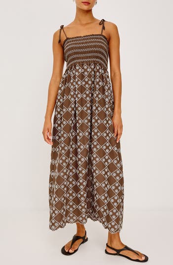 Step out in vintage-chic style with this woven cotton maxi dress embellished with floral eyelet embroidery.