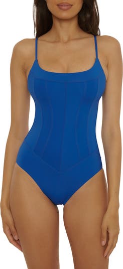A paneled design makes this open-back swimsuit stand out from the rest with a structured look.
