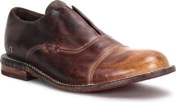 A laceless-closure adds to the laid-back charm of a menswear-inspired oxford featuring a hand-distressed finish for a vintage, lived-in look.