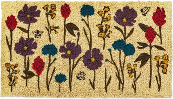 Bee Flowers Coir Mat Rectangle Indoor Outdoor Welcome Mat
