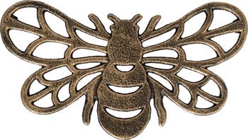 - This charming kitchen trivet features a beautifully detailed bee shape with delicate openwork wings showcasing intricate vein patterns, a striped body with textured detailing, and antennae, all rendered in a warm antique bronze finish that adds vintage charm to your kitchen.