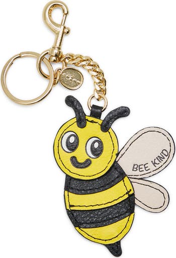 Bring a little vibrant cheer and energy to your handbag with this bee-shaped charm made of leather.