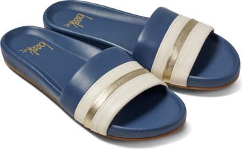 A molded memory foam footbed cradles each step in this leather slide sandal that offers arch support and grippy traction.