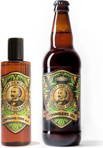 Captain Fawcett's Award Winning* Beerd Shampoo, as made with his preferred IPA, is a reassuringly gentle, cleansing concoction designed to not only wash away the detritus of the day, but further to leave your hirsute pride & joy looking simply splendid & in tip-top condition to boot. This rather magnificent formula includes over 80ml of fine ale (malt, hops & brewers yeast) & has a delectably enticing aroma.Please note that however tempting one should at all costs avoid quaffing or run the real risk of forever blowing bubbles...Carry On.NB: A bottle of our fine ale is sadly not included when purchasing a bottle of Beer'd Shampoo.*Bronze Award for "Best New Male Hair Product" 2017 Pure Beauty Awards
