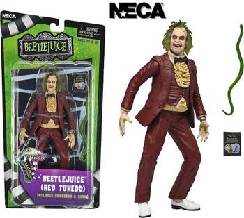Need to scare the living away from your comfy haunt? Just say "Betelgeuse" three times and you'll summon the hereafter's most obnoxious freelance bio-exorcist! Tim Burton's masterful comedy Beetlejuice comes to life with this 7” scale action figure of the Ghost with the Most. Wearing his red tuxedo, he's highly detailed and articulated for posing. Includes snakes and cigar accessories. A great addition to any fan's collection!