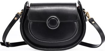 A genuine leather crossbody with artisan stitched details and a vintage flap design. Its compact interior includes essential pockets for simple everyday function.