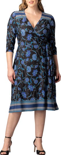 Delight on sight in this whimsically patterned dress cut from oh-so-comfortable jersey and sporting a curve-hugging wrap silhouette.