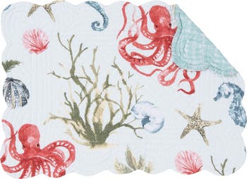 Behari Coastal Sea Life Cotton Quilted Reversible Placemats Set of 6, 13" x 19"