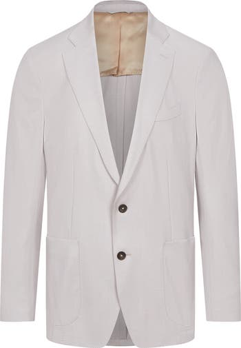 A subtly textured blend of wool, silk and linen in a creamy, neutral beige relaxes the formality of a sport coat designed with rounded shoulders emphasizing its unconstructed tailoring. Lightweight and partially lined, it pairs well with relaxed silhouettes and easily complements your favorite elevated and warm-weather looks.