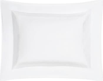 Modern upscale style meets classic design on this pillow sham made from crisp long-staple cotton percale and embroidered with a trio of elegant stripes.