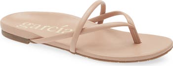Metallic leather straps magnify the modern glamour of this lightweight flip-flop.