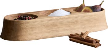 The largest set in this collection includes a single hand-carved marble reamer and a smooth oak tray with three rounded basins to hold it and more.