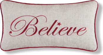 Bring festive cheer into your home with this beautifully embroidered “Believe” cursive script Christmas pillow. Designed in a petite 10" x 18.5" size, it adds the perfect finishing touch to your holiday décor without overpowering your space. The elegant script embroidery creates a timeless holiday accent that instantly elevates the look of your sofa, chair, bed, or entryway. Crafted from a durable cotton blend, this pillow is designed to last through many holiday seasons, with detailed stitching that offers a premium finish. Its versatile design complements a variety of Christmas décor styles, whether your home is dressed in classic reds and greens or styled with neutral, modern tones. Perfect for layering with other seasonal pillows or throws, this pillow brings warmth and festive charm to any room. Thoughtfully sized and richly detailed, it also makes a meaningful gift for family, friends, or holiday hosts, offering joy and holiday spirit in a stylish decorative accent.