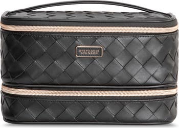 This spacious cosmetics case is designed with top and bottom storage compartments perfect for organizing makeup and skin-care essentials.
