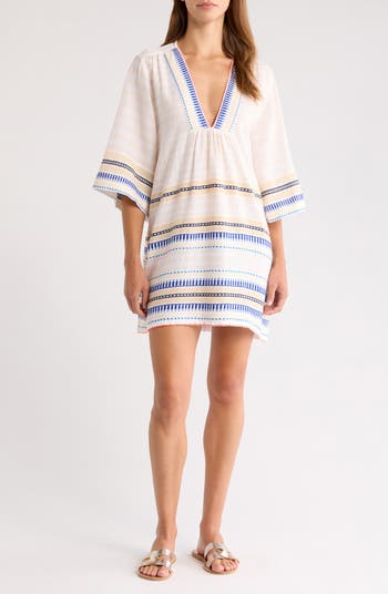 Embroidered details bring a pop of color to this breathable cotton-blend cover-up caftan that's perfect for your next pool day.