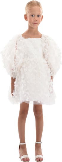 - 100% Polyester?Long sheer sleeves with soft volume?Butterfly appliqués across bodice and skirt?Layered tulle for whimsical texture?Playful silhouette with elegant drape?Ideal for festive occasions and celebrations?Imported