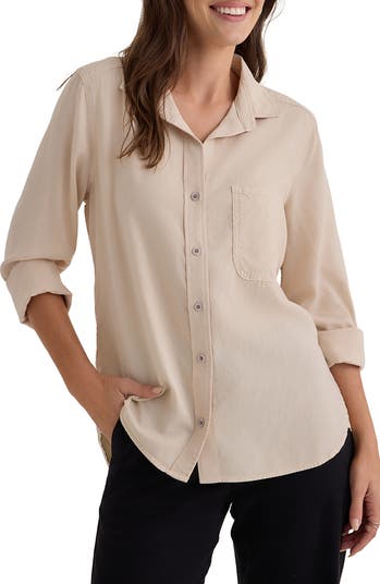 This breezy yet polished button-up is crafted from soft, sustainable Tencel® lyocell with a tuckable shirttail hem.