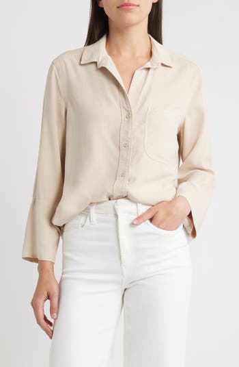 This breezy yet polished button-up is crafted from soft, sustainable Tencel® lyocell with a tuckable shirttail hem.