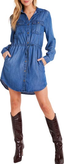 Utility Long Sleeve Drawstring Waist Shirtdress