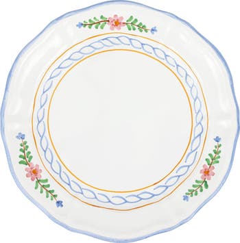 Hand-painted floral and botanical motifs bring traditional Italian style to a dinner plate made from fine Terra Bianca ceramic that's elegant enough for special occasions and durable enough for every day.