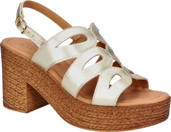 A braid-textured platform and heel elevate a strappy sandal finished with a cushioned footbed for comfort with every step.