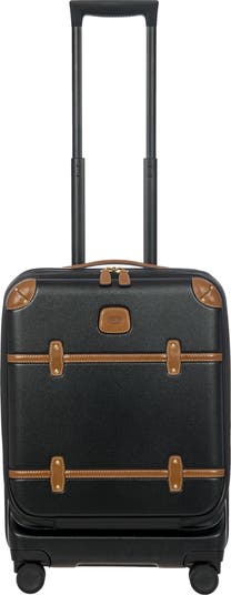 The Bellagio Collection is characterised by unmistakable design, our most iconic yet. With a front pocket, this cabin-size 21" trolley is made of recycled polycarbonate, a lightweight, flexible material which is ultra durable and impact-resistant. The front pocket provides quick and easy access to the protected computer/tablet sleeve, complete with a USB port for a battery pack. The USB adapter is protected on the outside by a rain-blocking cover. The suitcase’s closure features a TSA lock and an ultra-secure zip: this anti-tampering system ensures an optimised degree of protection from attempted theft. The inside is complete with a compression system, divided into two compartments to ensure the effective organisation of all your items. Moreover, the expandable zip closure makes it possible to increase its capacity. The lining is easily removed thanks to a special zip: that way, if needed, it can be washed separately. To ensure comfort and ease of use, the retractable handle is made up of robust, sturdy aluminium tubes with intermediate stop positions so that its height can be adjusted as needed, and an ergonomic grip. The four double wheels move quietly and rotate a full 360° for guaranteed manoeuvrability, equipped with ball bearings that create a smooth ride. Moreover, the wheels are recessed in the shell, thereby increasing the capacity of the trolley. Bric’s distinctive real leather accents trim the outside of the Bellagio trolley, complemented by refined logo details. The leather address tag carrier is an essential finishing touch.