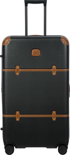 Trunks are the quintessential travel luggage, the oldest and most captivating custodian of so many travel stories. The Bellagio trunk is characterised by its unmistakable design, the most iconic yet. This large 31" travel trunk is made of recycled polycarbonate, a lightweight, flexible material which is ultra durable and impact-resistant. The closure comes with a TSA lock and an ultra-secure zip: this anti-tampering system ensures an optimised level of protection from attempted theft. Perfectly matched to its retro aesthetic, its original proportions offer even more space inside. The inside is complete with a compression system, divided into two compartments to ensure the effective organisation of all your items. The lining is easily removed thanks to a special zip: that way, if needed, it can be washed separately. To ensure comfort and ease of use, the retractable handle is made up of robust, sturdy aluminium tubes with intermediate stop positions so that its height can be adjusted as needed, and an ergonomic grip. The four double wheels move quietly and rotate a full 360° for guaranteed manoeuvrability, equipped with ball bearings that create a smooth ride. Moreover, the wheels are recessed in the shell, thereby increasing the capacity. Bric’s distinctive real leather accents trim the outside of the Bellagio travel trunk, complemented by refined logo details. The leather address tag carrier is an essential finishing touch. To better organize the suitcase, the hanger set and the garment bag in fabric can be purchased separately. To protect your Bellagio trunk, a special travel case can be purchased separately. Transparent cover included.