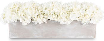The Bellamy RealTouch Hydrangea Arrangement is presented in a sleek cement planter with a long, rectangular form. Inside, lifelike RealTouch hydrangeas are artfully arranged to create a soft, full display. Elegant and timeless, Bellamy adds a touch of natural beauty and sophistication to any table, console, or centerpiece.