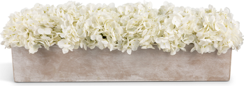The Bellamy RealTouch Hydrangea Arrangement is presented in a sleek cement planter with a long, rectangular form. Inside, lifelike RealTouch hydrangeas are artfully arranged to create a soft, full display. Elegant and timeless, Bellamy adds a touch of natural beauty and sophistication to any table, console, or centerpiece.