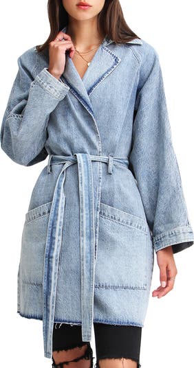 A classic trench coat is updated with a denim construction making it a cool staple for when you need extra warmth.