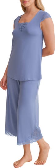 Scalloped lace lends instant romance to supersoft and stretchy PJs cut from micromodal jersey.