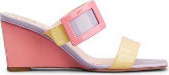 Introduced in the '60s, the Belle Vivier line lives on in this glossy patent-calfskin sandal with the iconic oversized buckle and a sculptural wedge heel.