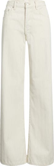 Sleek railroad stripes elevate the style of these barrel-leg jeans made from sturdy nonstretch denim.